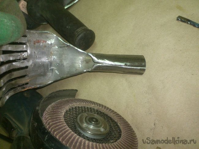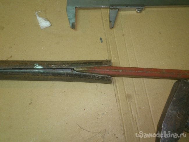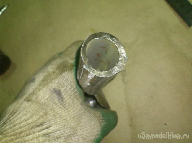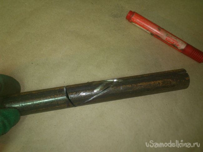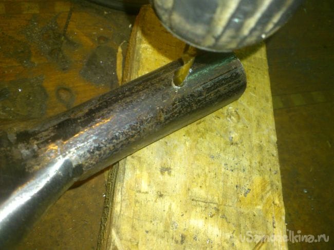 После этого я зубилом "раздвинул" трубу в продольной прорези: