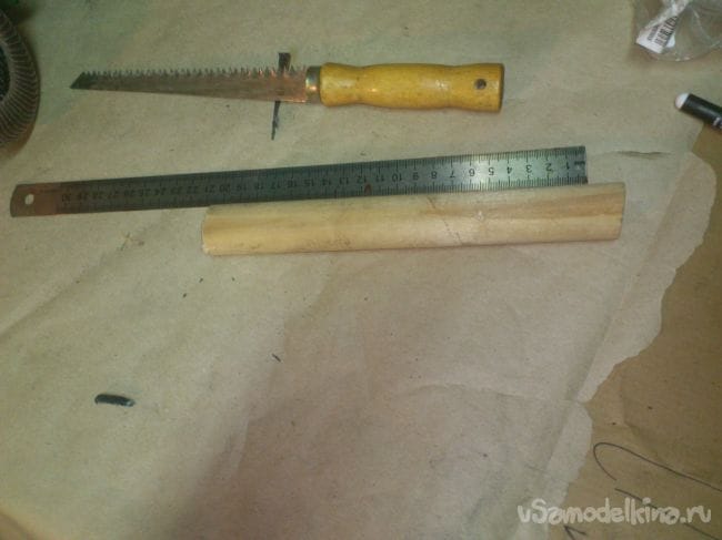Я отрезал отрезок нужной мне длины. (Не знаю, какой именно длины!))) Действовал, как и всегда, "по наитию". Ведь в голове-то я уже примерно держал размер будущего инструмента... Так зачем мне переводить его в миллиметры?)))).