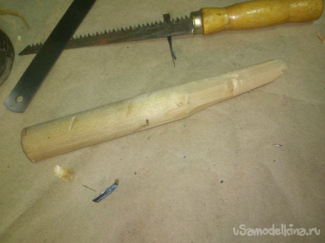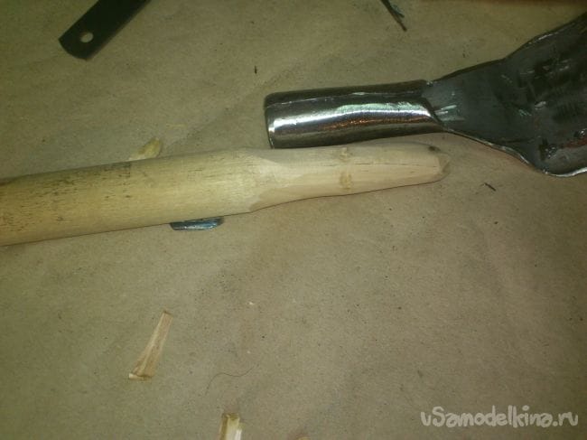 Потом ножом придал нужную форму тому концу, который будет забит в инструмент: