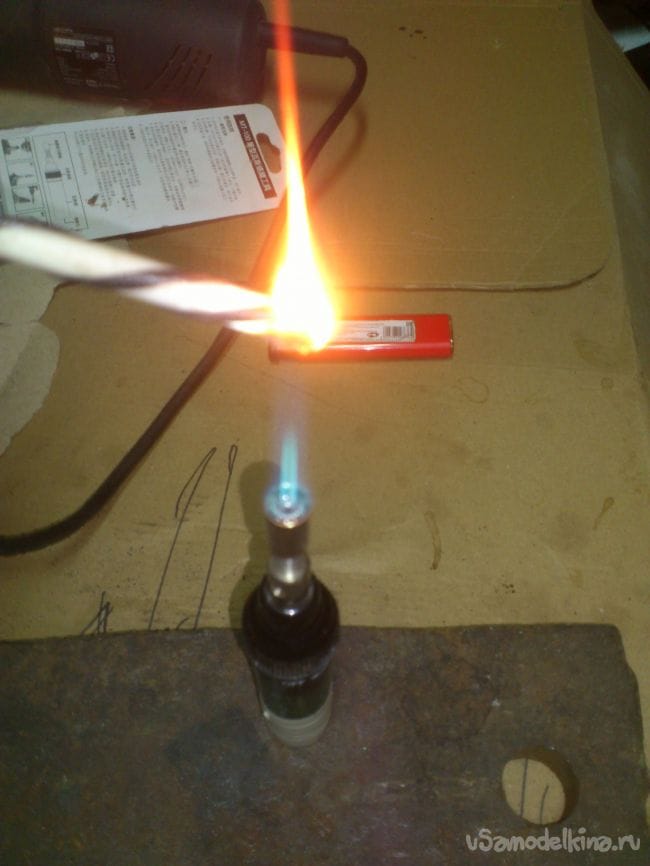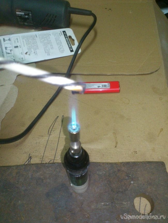 Можно делать это и простой зажигалкой... Но жечь нужно достаточно долго, поэтому я использую миниатюрную газовую горелку.