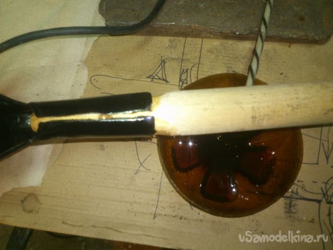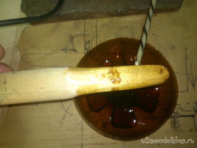 Итак... Кисть я сделал. Начнём наносить лак... Да-да, я не оговорился... Именно наносить лак... Обсадим и обработаем наждаком черенок позже...