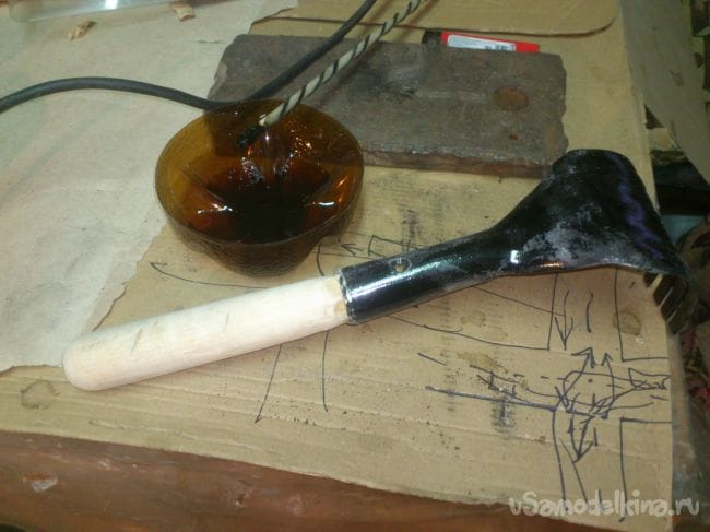 И сразу обсадил инструмент на черенок. (Налезло по лаку, как по маслу!)))).