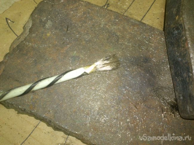 Отдельно остановлюсь на этом процессе... Время от времени мне нужно нанести клей, лак, грунтовку...и так далее... Если каждый раз для этого использовать новую кисть.... не камильфо это... Жалко ради нескольких мазков кисть портить... А мыть их - так пусть их негры на плантациях моют! )))). Поэтому, я для таких "мелких мазков" всегда использую одноразовые самодельные кисти... Для этого у меня валяются обрезки композитной арматуры: