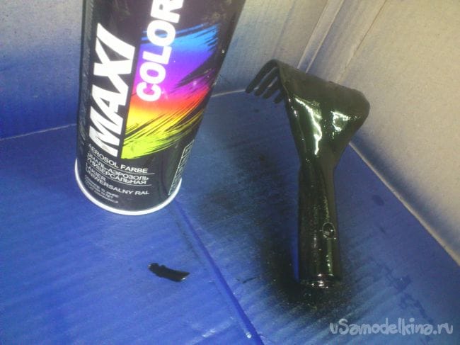 Тем временем мне пришлось прерваться и уходить... А потому, чтобы время зря не пропадало, я быстренько покрасил металлическую часть чёрной эмалью из баллончика... Пусть сохнет пока...