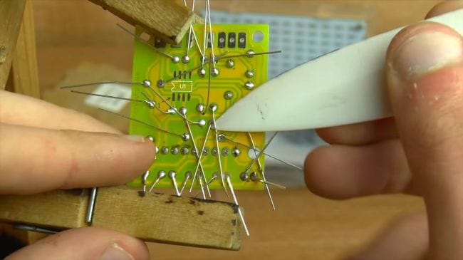 При откусывании выводов компонентов будьте как можно аккуратнее, так как можно нечаянно оторвать дорожку с платы.