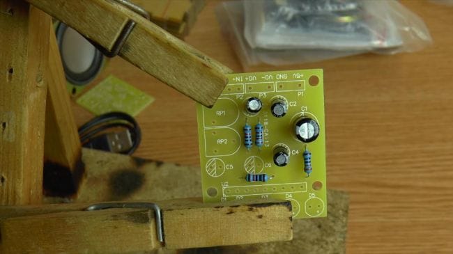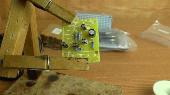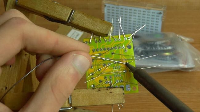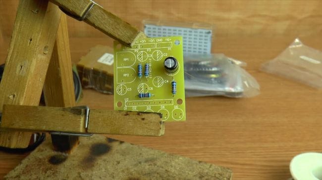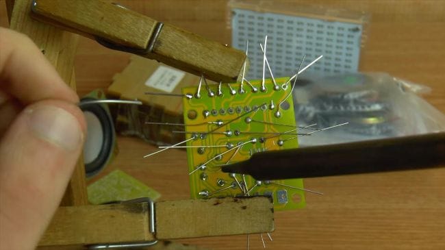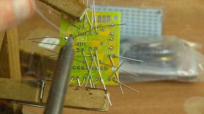 Когда все детали установлены на плате, подгинаем ножки с другой стороны платы и переходим к пайке.