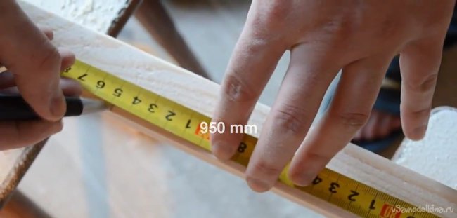 Берем два бруска по 170 см, кладем их ровно и отмеряем 95 см от верхней части.
