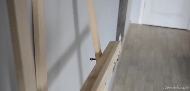 Мольберт готов. Остается лишь поставить полочку на свое место и зафиксировать двумя анкерами с гайкой.