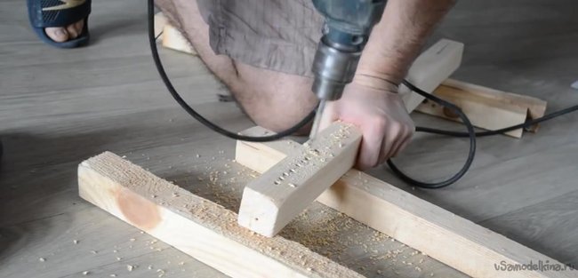 Теперь сверлим все отметки сверлом по дереву и обрабатываем отверстия наждачной бумагой.