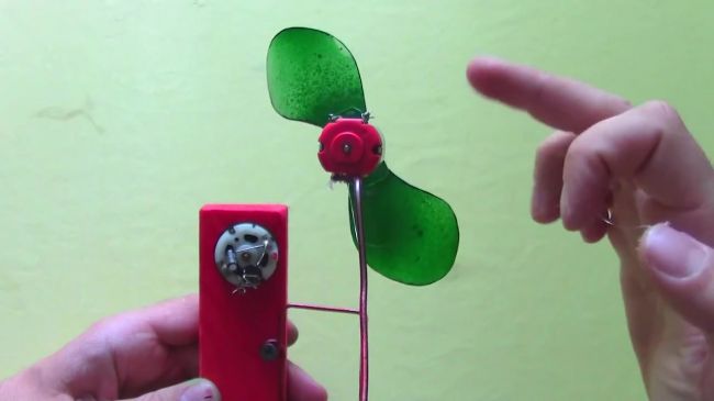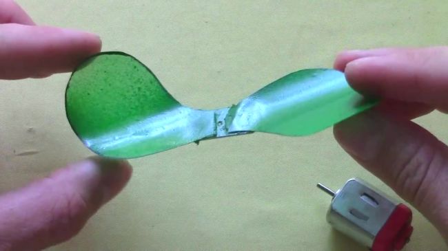 Если вы также решили изготовить вентилятор собственноручно, то вам понадобится моторчик и пластиковая бутылка. Из пластиковой бутылки нужно будет вырезать две лопасти и соединить их между собой куском пластмассы. Наконец, конструкцию лопастей нужно будет зафиксировать на вале моторчика.