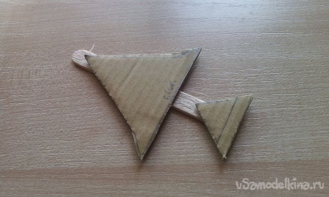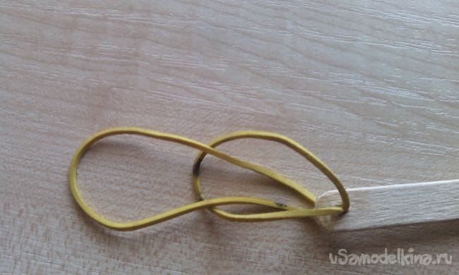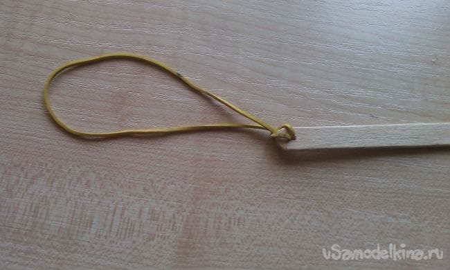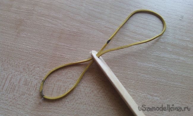 И приклеиваем их к палочке от мороженного, которая будет служить нам в качестве каркаса: