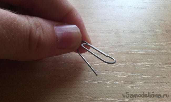 Теперь берём скрепку и сгибаем её так как показано на картинки: