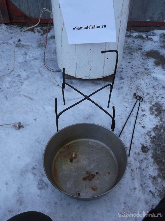 Для того чтобы чаша находилась на расстоянии от нагревательного элемента, пришлось сварить крестовину из проволоки.