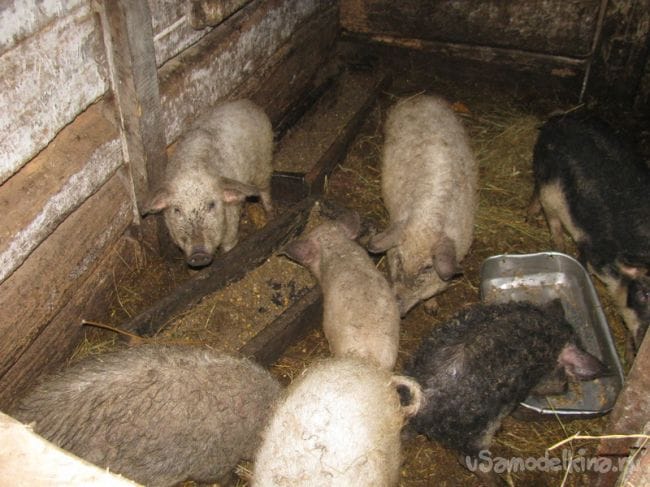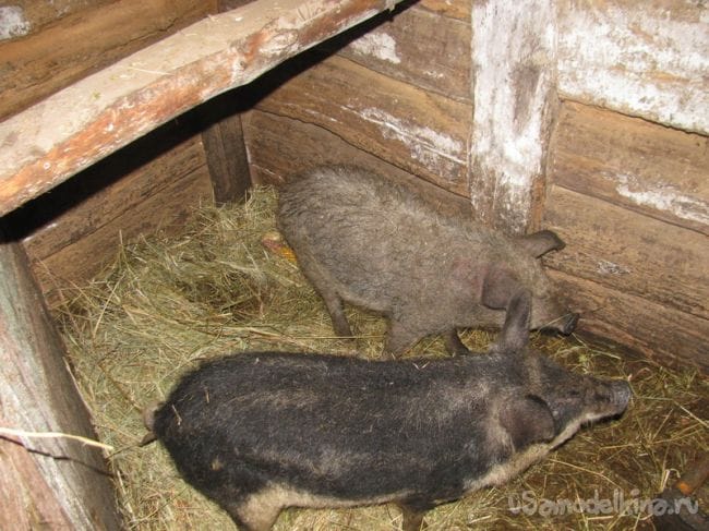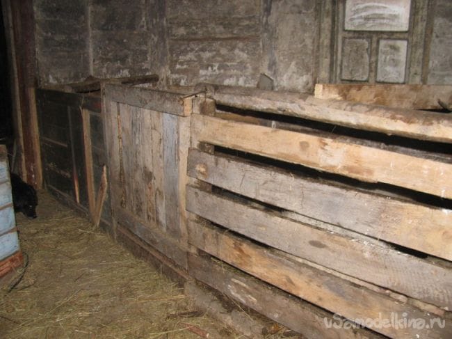 Свиньи у нас живут в старом доме, в нем сооружены отдельные загородки из старых брусьев, досок и так далее. Выдержит ли эта конструкция порывы поросят, когда они подрастут, пока неизвестно. Само собой, взрослых свиней весом 200 кг за ней держать никто не собирается.
