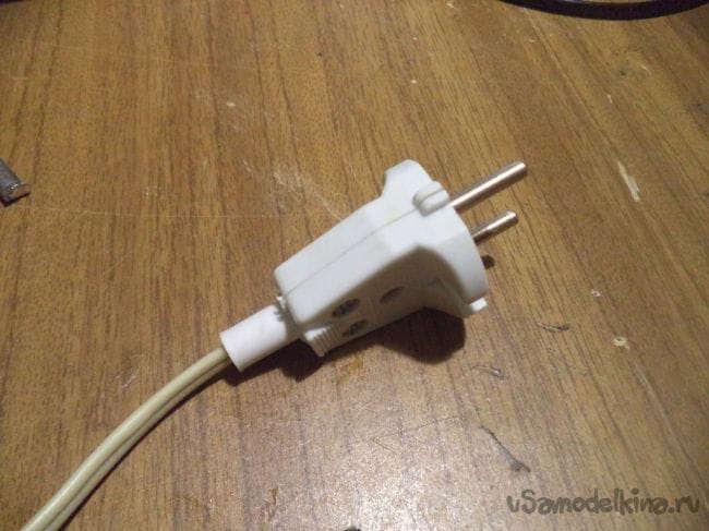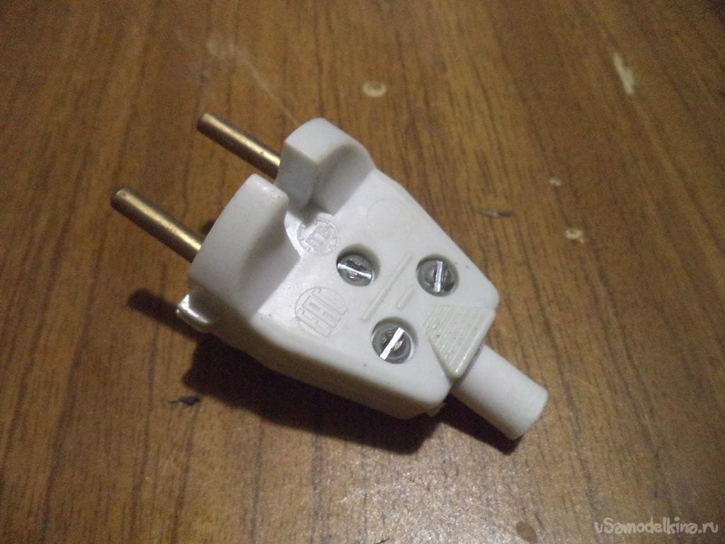 На другой конец провода подключаем электрическую вилку, купленную в магазине электротехники.