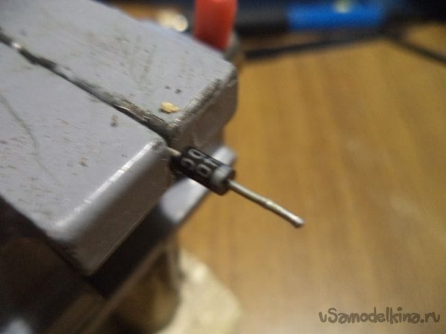 С помощью электрического паяльника спаиваем из этих четырех диодов одно целое.