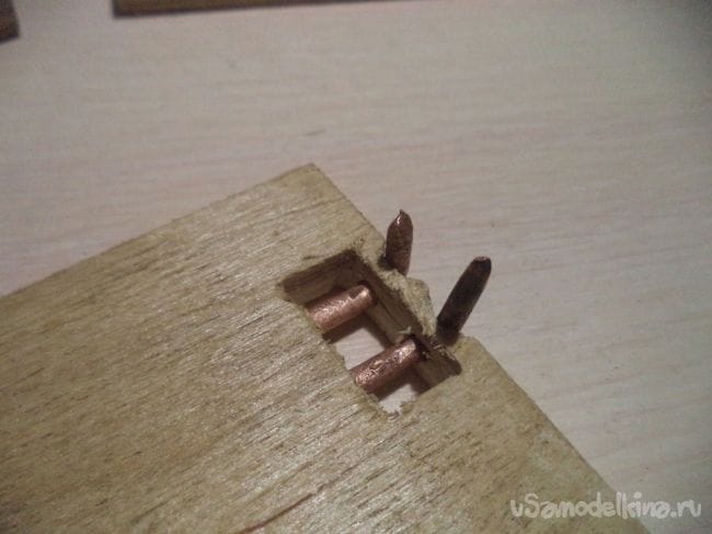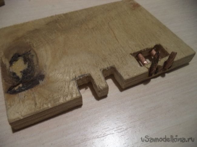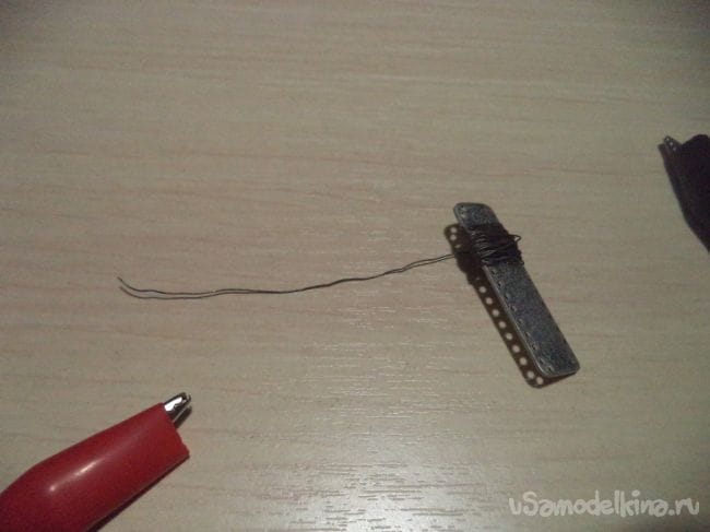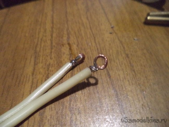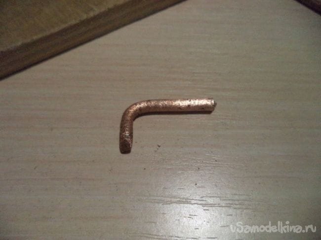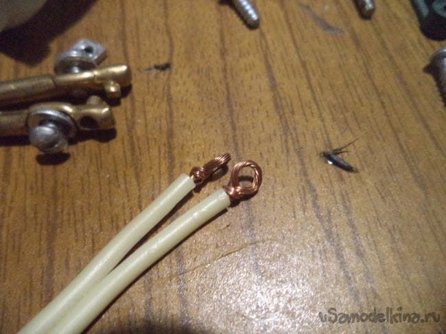 Теперь приделываем в это отверстие эту медную проволоку.