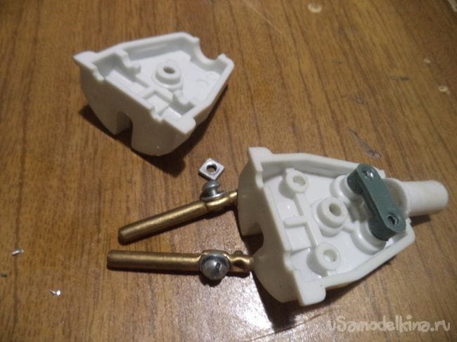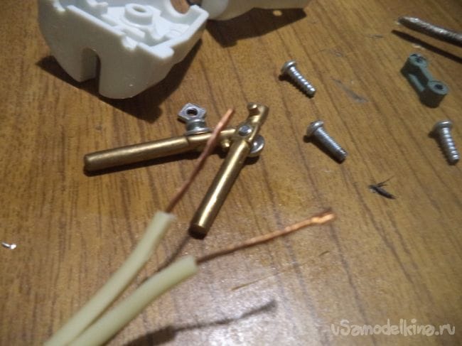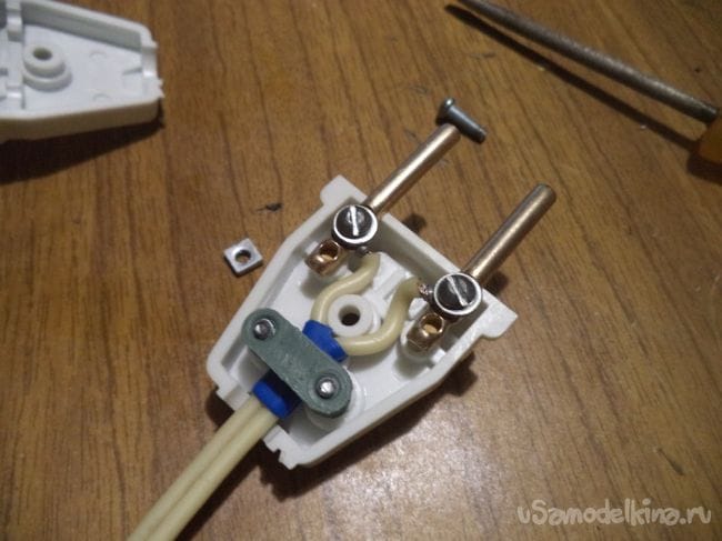 Не забываем за ранее надеть детальку электрической вилки. Привинчиваем провода к клеммам вилки и собираем корпус обратно.