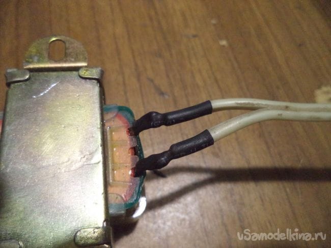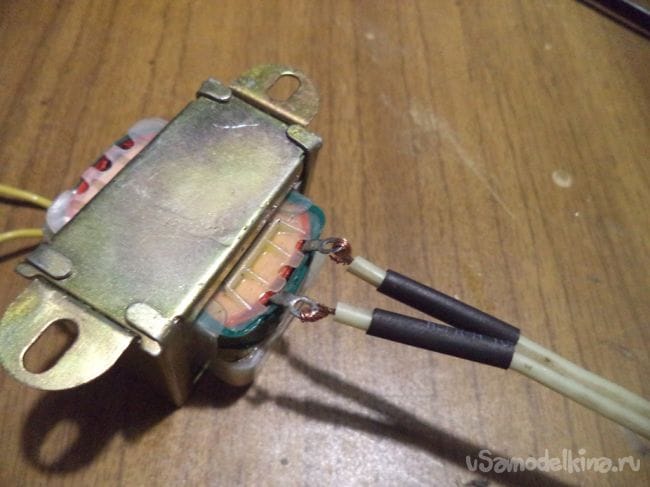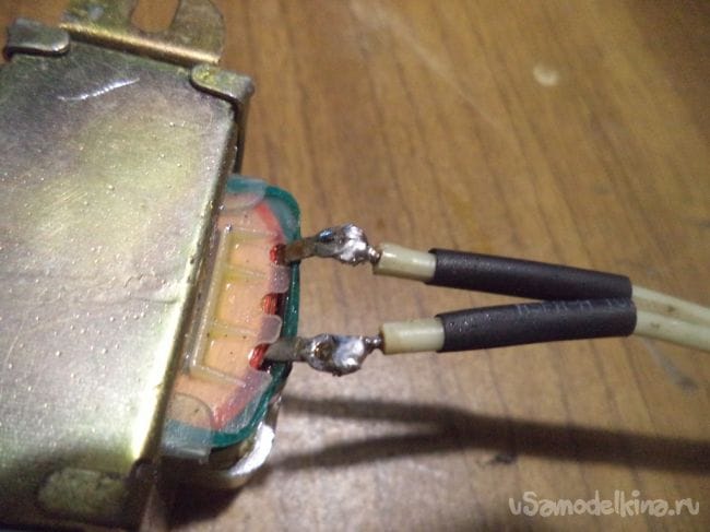 Очищаем контакты, надеваем термоусадку и припаиваем провода к трансформатору.
