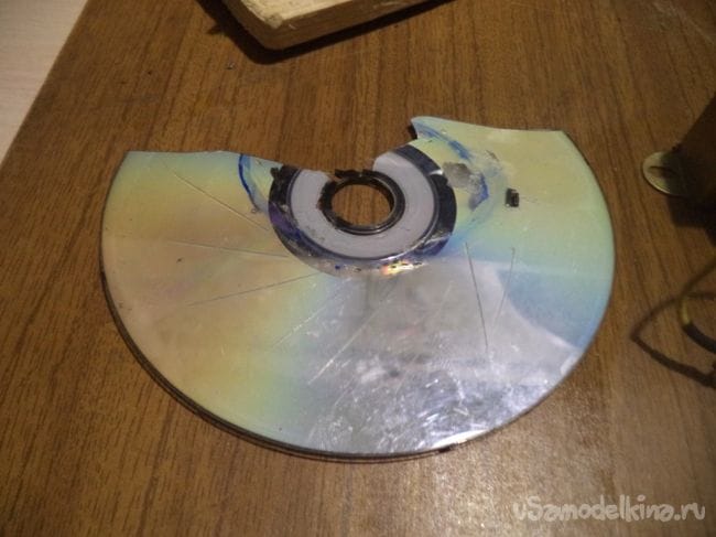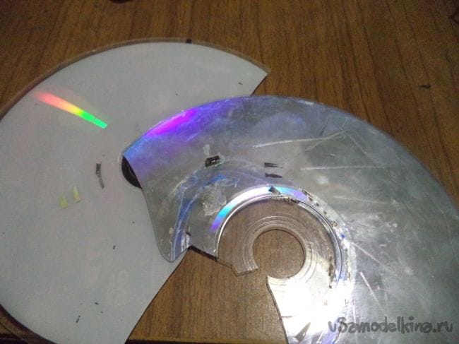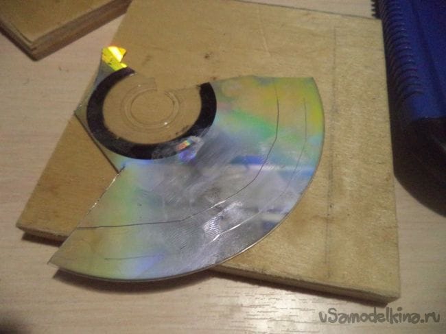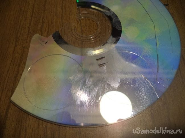 С помощью канцелярского ножа разделяем CD диск на две части.