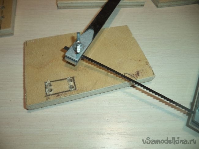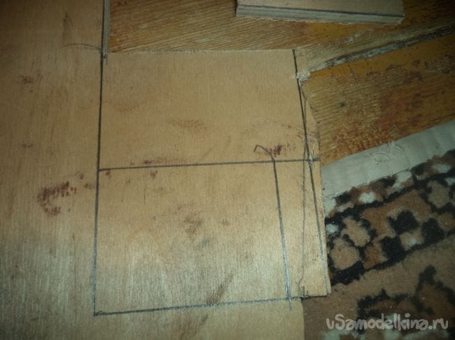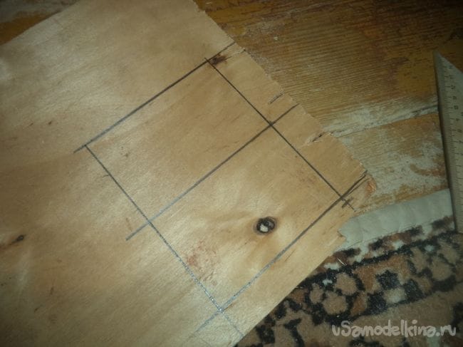 Теперь чертим на фанере следующие прямоугольники. один из них будет меньше. Далее выпиливаем их.