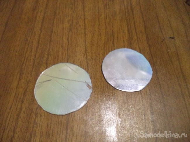 Из одной из частей вырезаем два одинаковых круга.