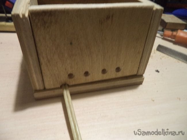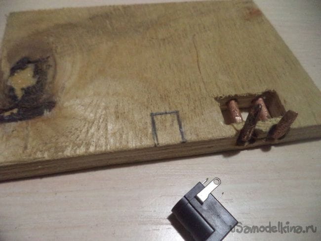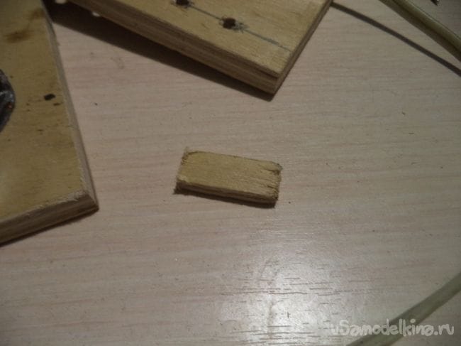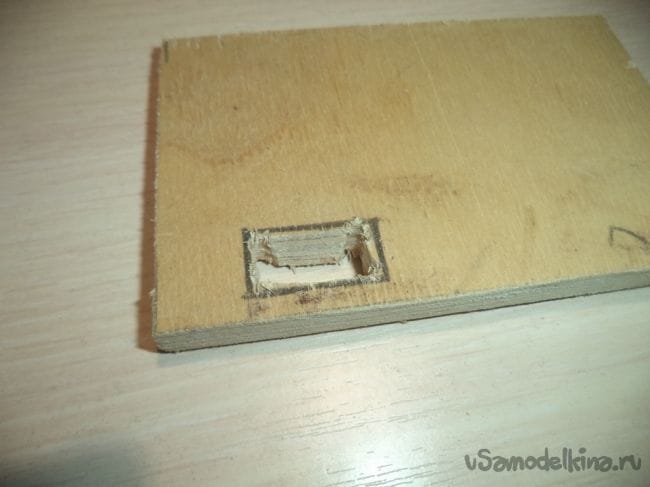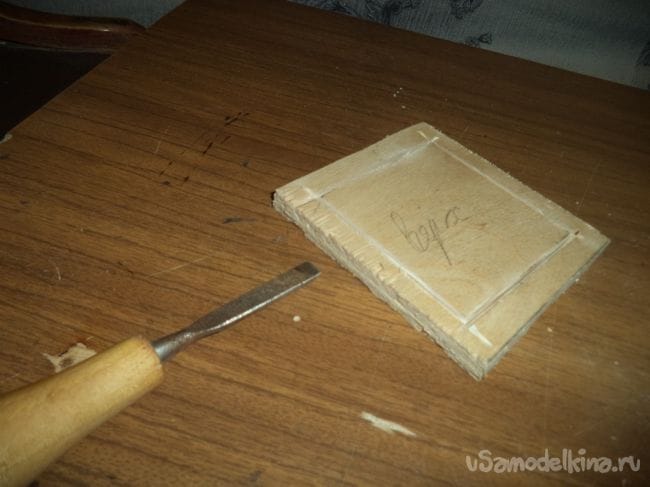 Выковыриваем с помощью стамески углубление на маленьком прямоугольнике с прорезями внутри.