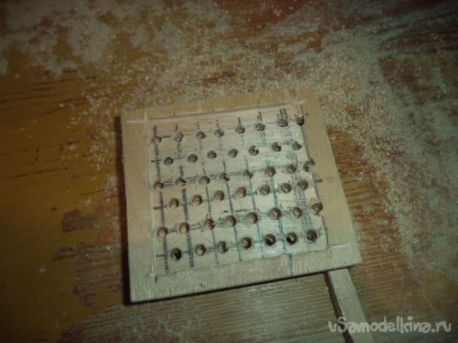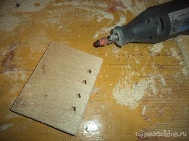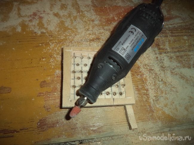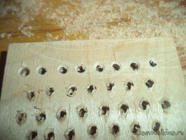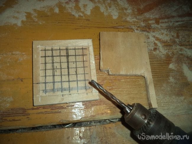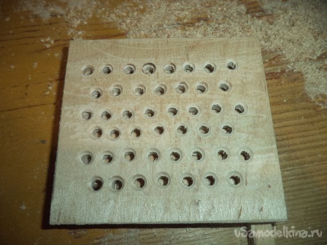 На одной из деталей, на которой делали углубление, сверлим отверстия сеточкой.
