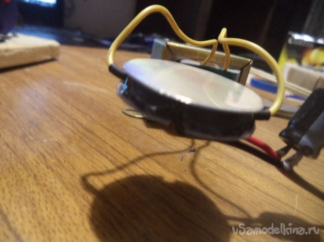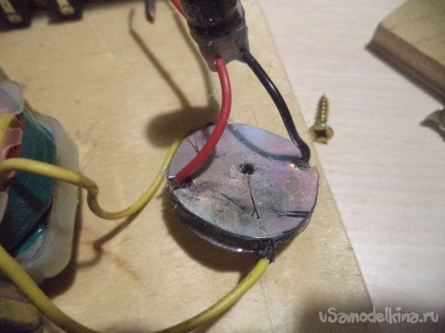 Теперь сделаем корпус диодному мосту из обычного CD диска и приклеивая все клеевым пистолетом.