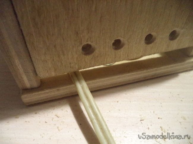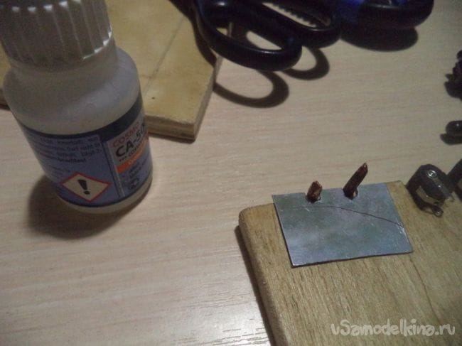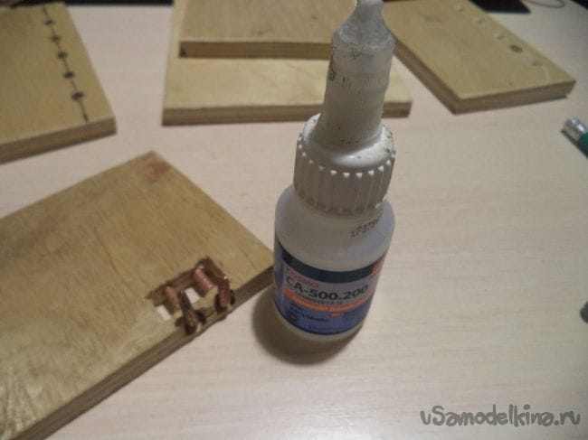 Полученные две детали вставляем в отверстия и приклеиваем их туда супер клеем.