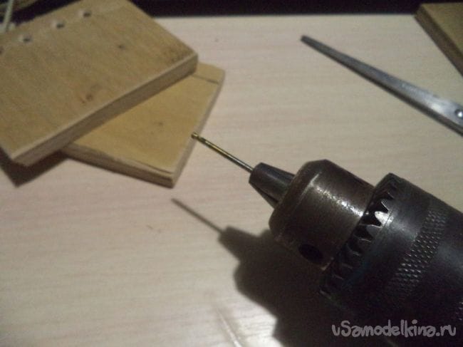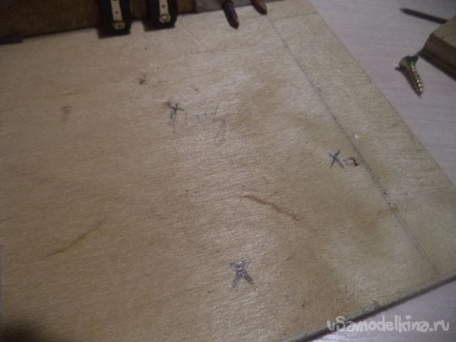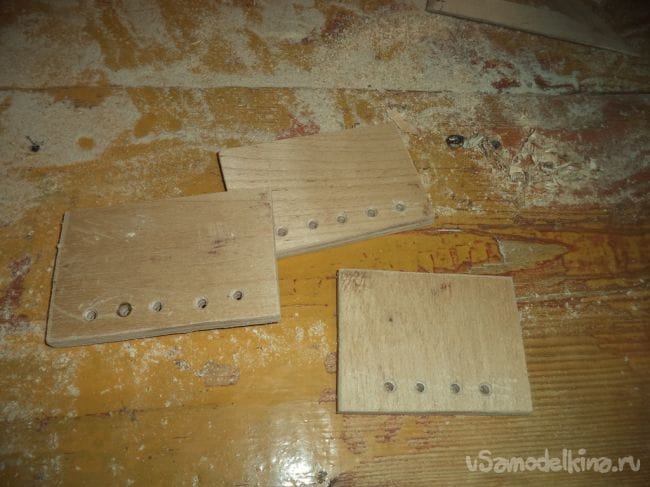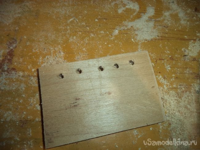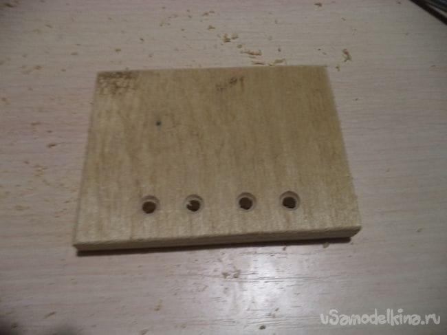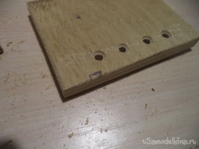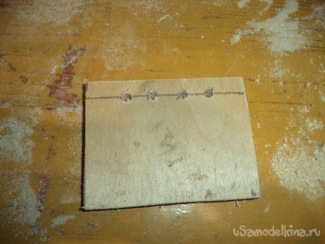 На трех других деталях, кроме лицевой, тоже сверлим отверстия по нижнему месту деталей.