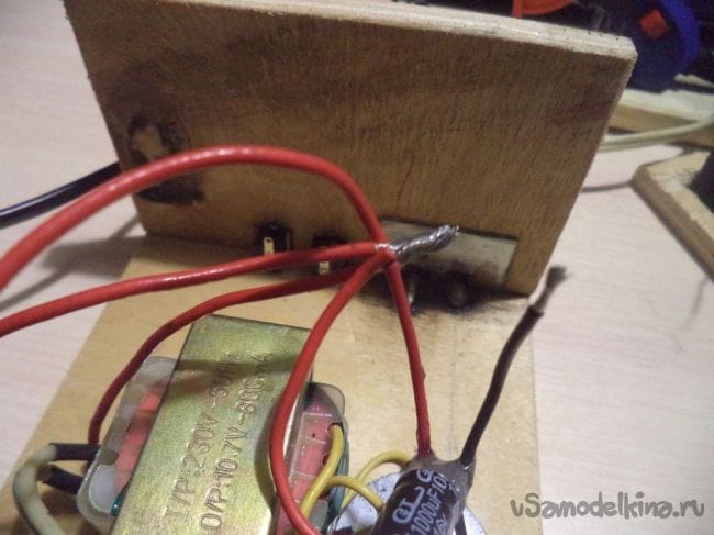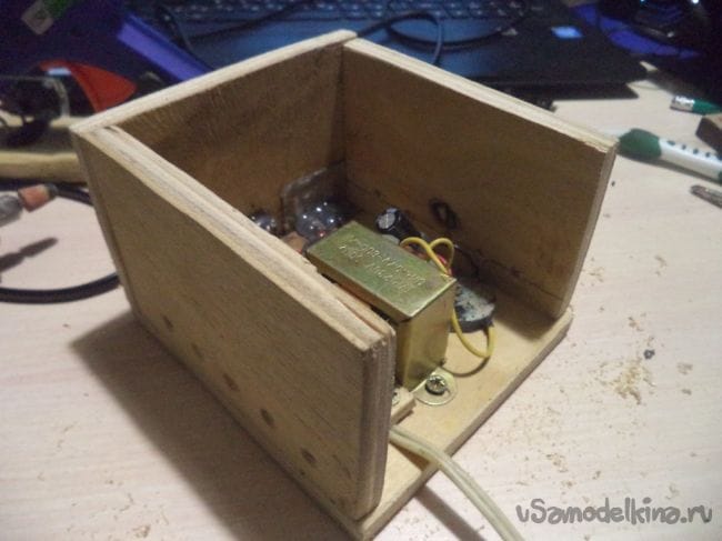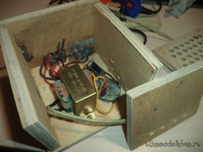 Все, главное, то есть электрическая цепь, уже готова, теперь надо собрать деревянный корпус, что самое сложное в данной самоделке. Для пайки этой цепи у меня ушло всего час, или меньше, но вот на деревянный корпус ушел почти целый день.
