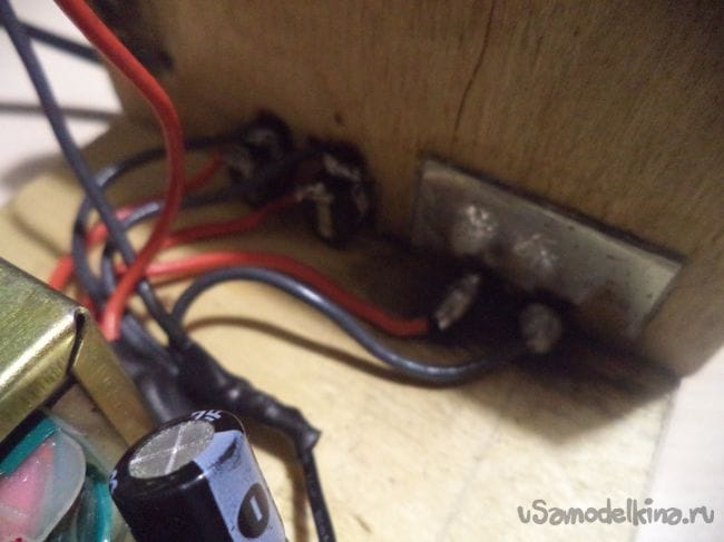 Закрепляем трансформатор и диодный мост к корпусу.