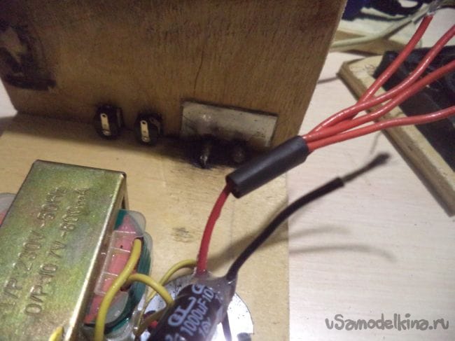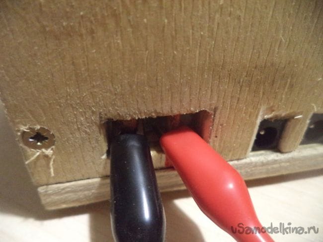 Теперь припаиваем провода к разъемам и выводу, на который будут прикрепляться крепления типа крокодилы.