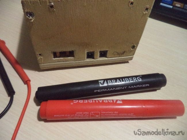 Теперь промаркируем вывод. Красный - плюс, черный - минус, в этом нам помогут перманентные маркеры.