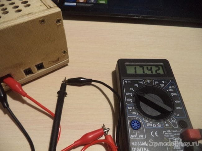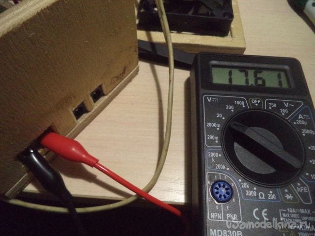 Снова проверяем показания мультиметром. Напряжение уже повысилось до 17,61 вольт.
