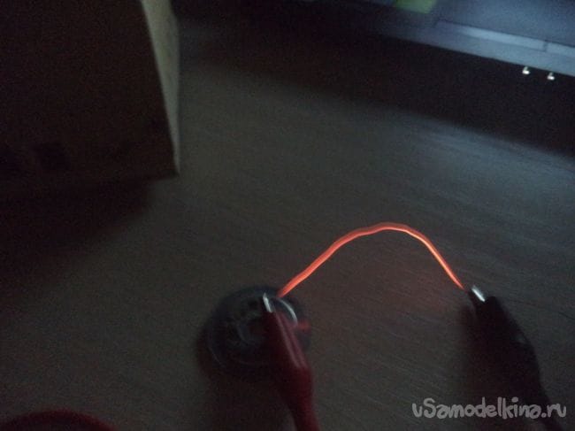 Протестируем наш блок питания с помощью нихромовой проволоки.