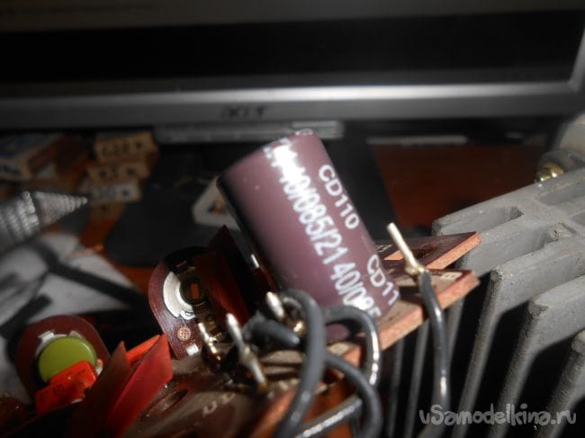 Меняем конденсатор С5 – 16в 220 мФ на конденсатор 2200 мФ 25 в (что было)