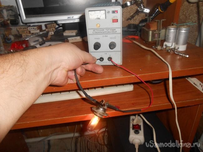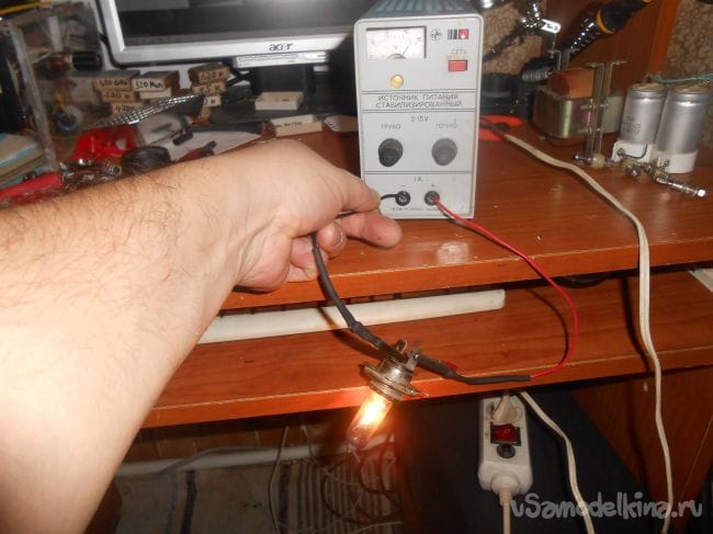 Тестирую автомобильной фарной лампой Н4 на 24 вольта (под рукой другой нет…)