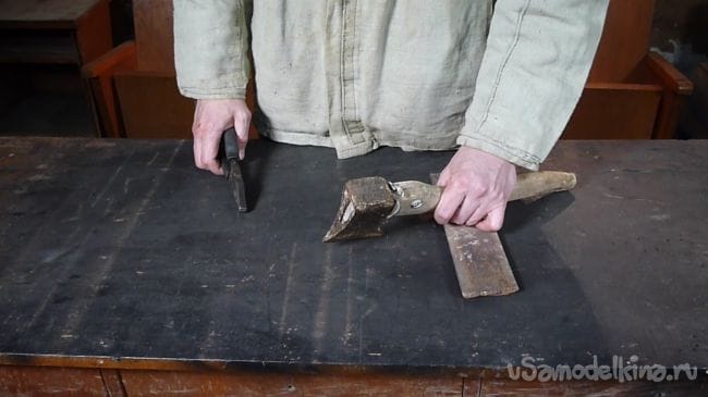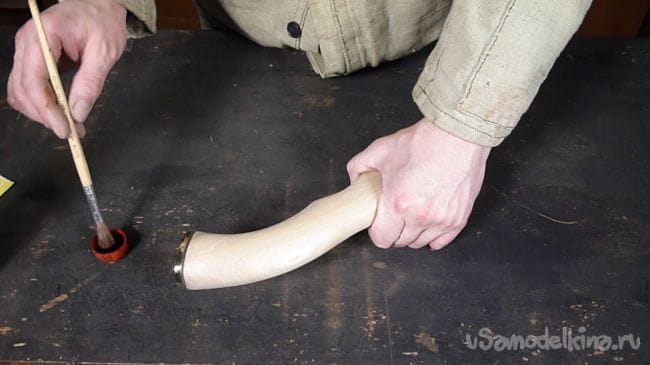 Обрезаем и сверлим одно или два отверстия для крепления к топорищу.