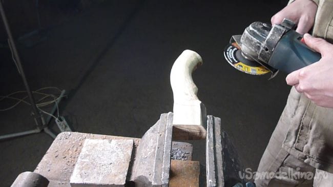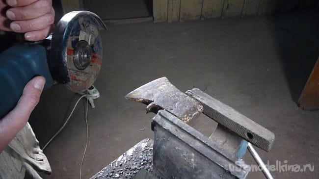 При помощи болгарки и зачистного лепесткового диска придаем топорищу удобную форму.