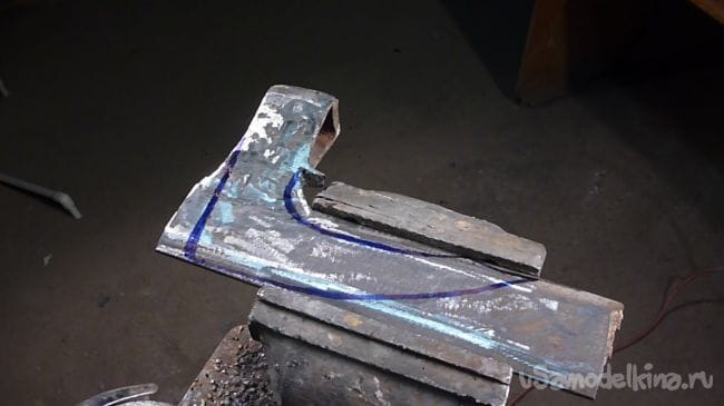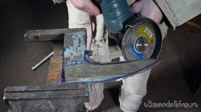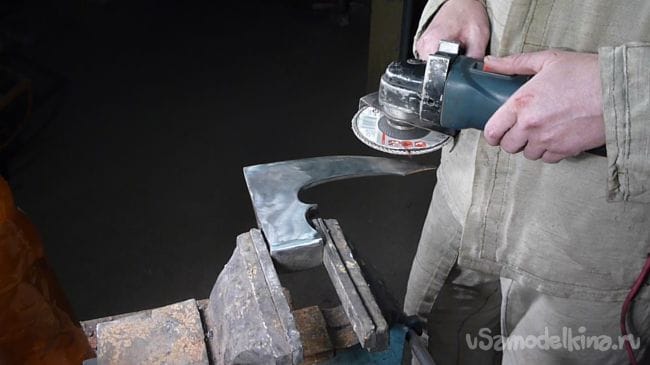 Зачищаем шов, если все устраивает-рисуем желаемый контур топора и вырезаем болгаркой.