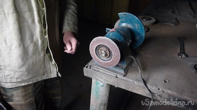 Зачищаем поверхности зачистными кругами, сначала обычным, затем лепестковым. В процессе работы периодически поливаем деталь водой. Перегрев не допускаем.