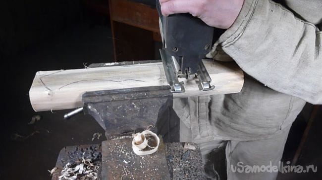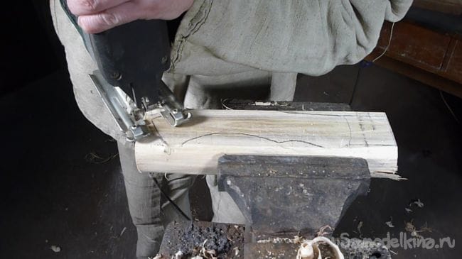 Рисуем примерную форму рукояти и вырезаем электролобзиком.