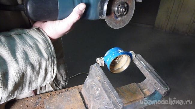 Отрезаем у счетчика дно, имеем заготовку латуни толщиной 5 мм.