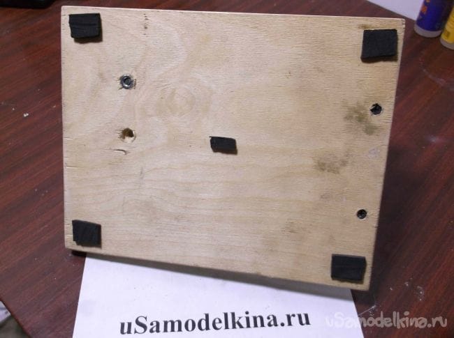 С нижней стороны основания по углам наклеиваются кусочки резины или ластика для предотвращения скольжения.