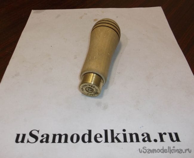 В рукоятке сверлом 5мм просверлено направляющее отверстие и шпилька просто вкручена в ручку.