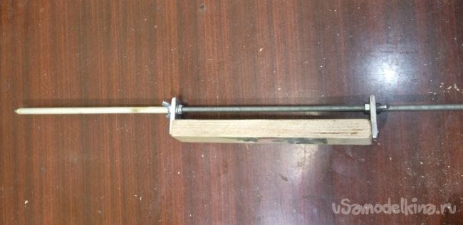 Брусок закрепляется на полуметровой шпильке, которая является и направляющей. С одной стороны шпильки примерно 10 – 12 см надевается трубка ПВХ подходящего диаметра для равномерного скольжения.