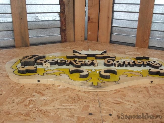 Потому же принципу я изготовил ещё одну табличку «Царская банька».