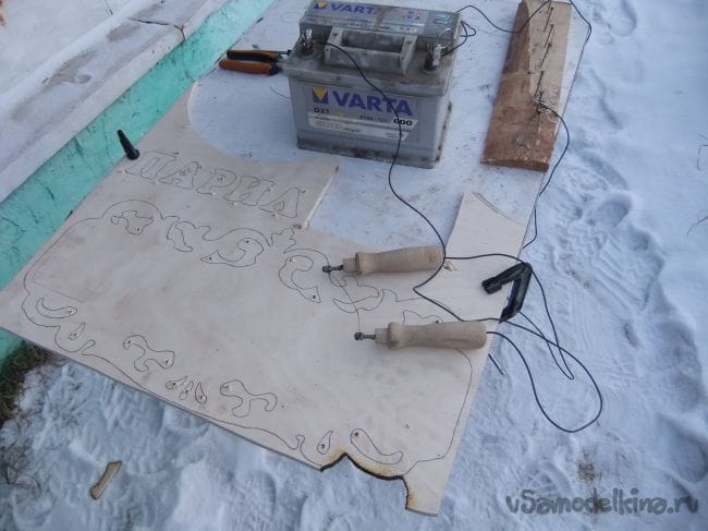 5. Автомобильный аккумулятор и нихромовая проволока;